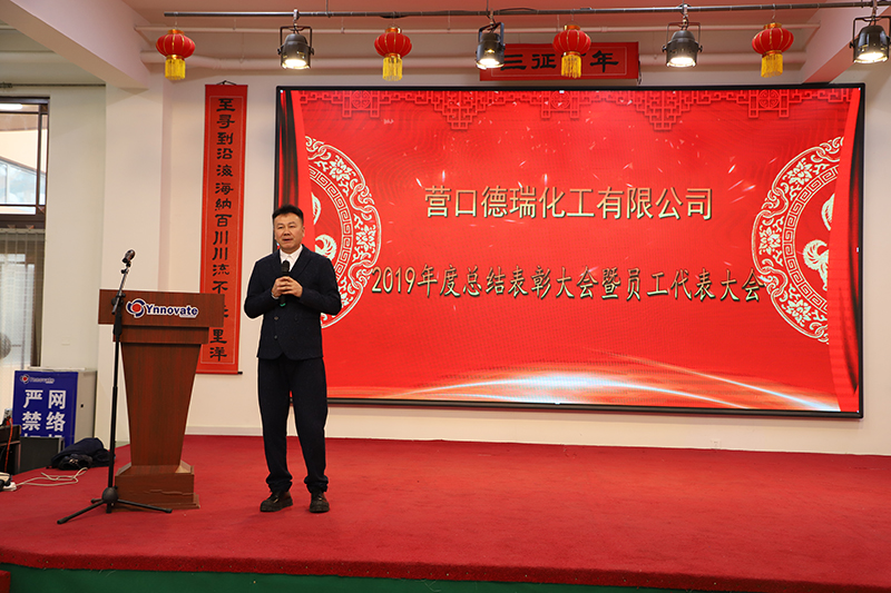 2020年1月22日上午9:00,營口德瑞化工有限公司2019年度總結表彰大會暨員工代表大會在員工食堂隆重召開,“三征”創(chuàng)始人劉慶晨教授,盛海投資董事長、營創(chuàng)三征黨委書記劉至尋先生,營新科技生產總監(jiān)劉健先生,營創(chuàng)三征行政總監(jiān)商富麗女士,營創(chuàng)三征ESH總監(jiān)齊長亮先生,德瑞化工全體管理層及員工代表,共計150余人出席了大會,公司副總經(jīng)理周永強先生主持會議。